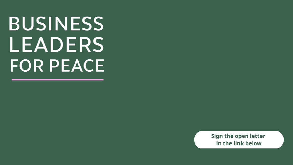 Business Leaders for Peace's Open Letter provides a collective platform for business to stand for human rights, international law and the fundamental conditions of peace, stability, and global prosperity.