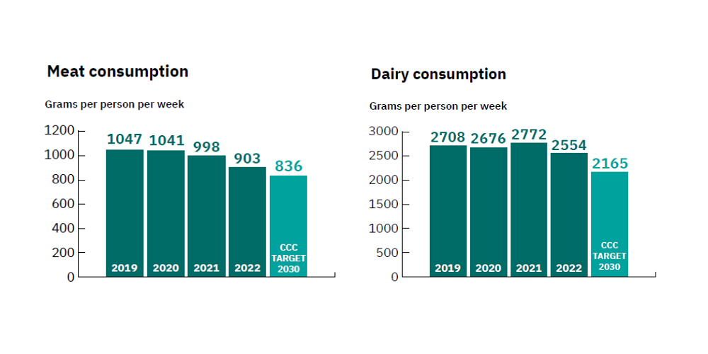 Across these areas, the most striking of these was the continuing fall in reported meat and dairy consumption.